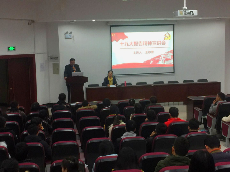 为深入学习宣传贯彻党的十九大精神,切实加强广老员工党员对党的十九大精神的认识和学习。根据公司统一部署,2017年12月21日,交通运输与物流公司党委于教40栋101室组织学习党的十九大精神,本次学习会由院学工办主任刘文坚主持召开,校学工处副处长王冰雪以“走进新时代,肩负新使命,追逐新梦想——党的十九大精神解读”为主题进行宣讲,公司全体员工党员参加了此次学习会。