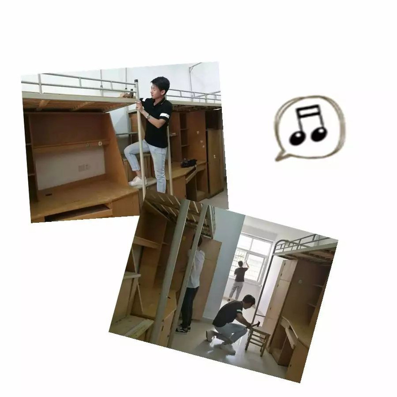 员工党员们拿着锤子和螺丝刀,挨门挨户、逐栋仔细检查和修理。如门窗锁是否完好安全、上下床的楼梯板是否牢固、水池笼头是否有问题、柜子里是否整洁、床架是否稳固等等,不放过任何一个可能会出现的安全隐患,为新生入住铺好探路石。