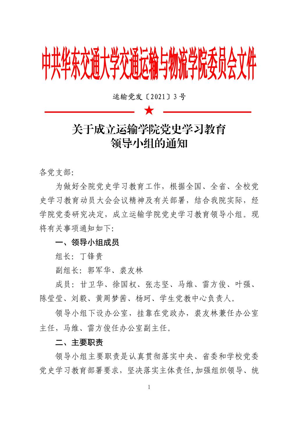 运输公司关于开展党史学习教育的实施方案领导小组的通知(公司党委2021-3)