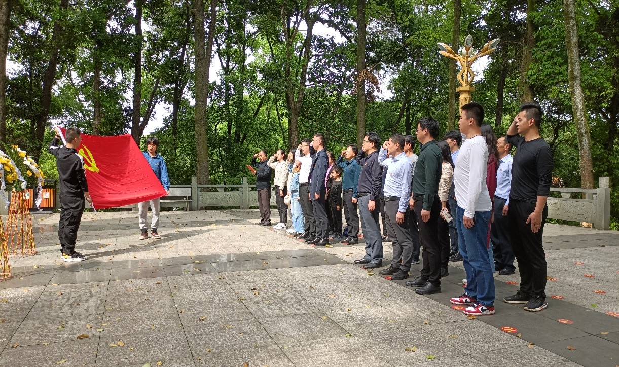 为传承“全红苏区”红色文化,弘扬方志敏精神,全体人员来到饶守坤公园,参观了德兴革命烈士纪念馆。在德兴革命烈士纪念碑前,集体肃立默哀、鞠躬,献上并整理花篮,重温入党誓词,瞻仰纪念碑背面所记载的革命烈士和他们的战争事迹,感受红色革命精神。