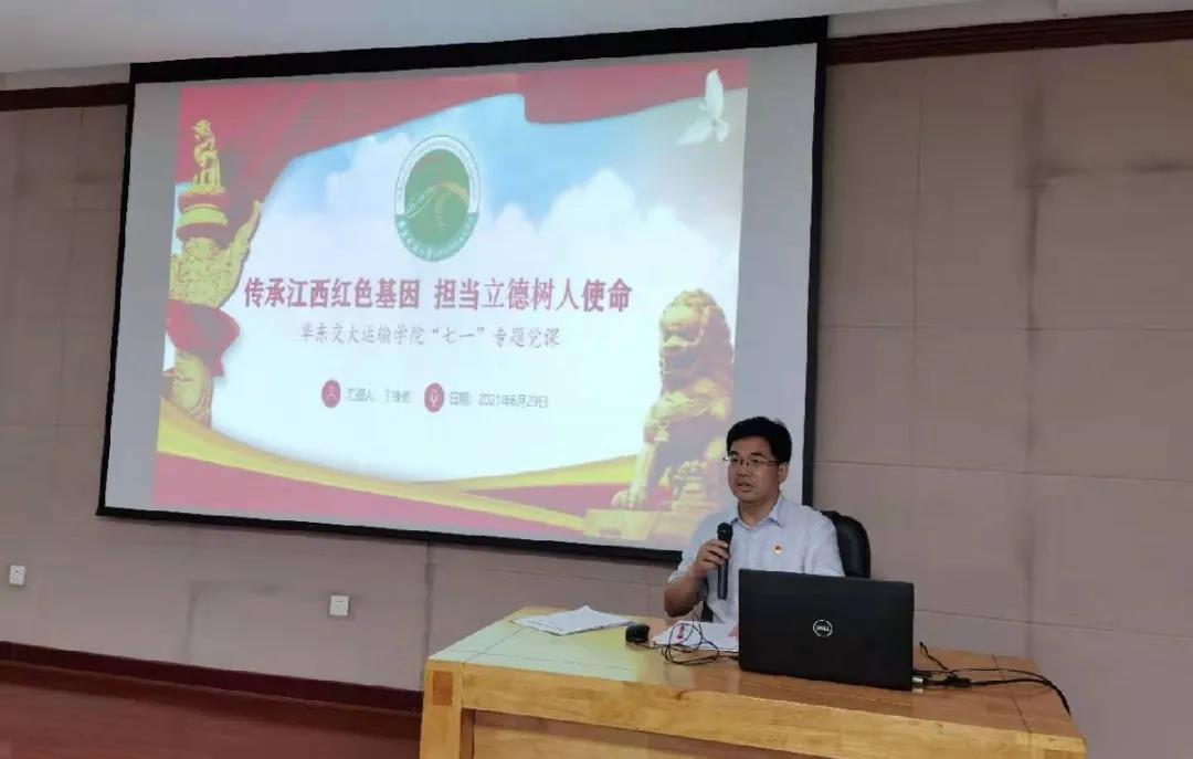 为庆祝中国共产党成立100周年,进一步推动党史学习教育走深走实,6月29日,运输公司党委书记丁锋贵在北区图书馆210给全院教职工作专题党课宣讲。