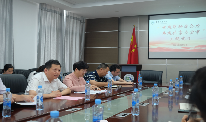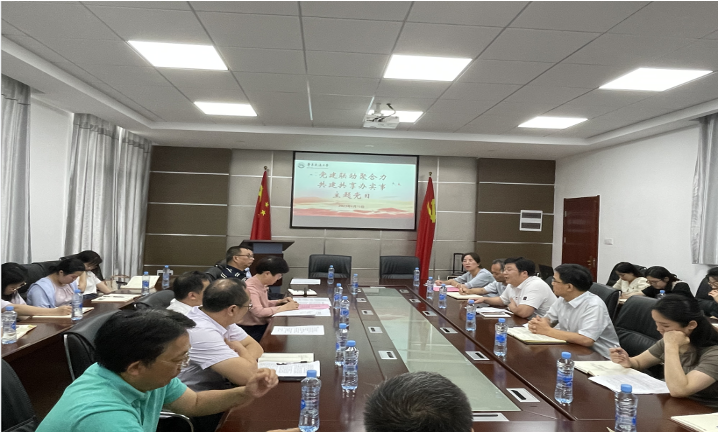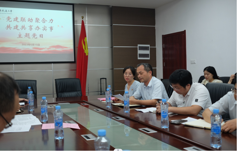 为推动主题教育走深走实,激发党支部党建新活力,推动党支部建设全面发展、全面进步、全面过硬,形成共建支部互为支撑、互通有无、共建共赢的生动局面,教务处、评估中心党支部与交通运输教工党支部于6月15日下午在交通运输公司301会议室开展“党建联动聚合力 共建共享办实事”主题党日。教务处、评估中心党支部与交通运输教工党支部全体党员参加活动,活动由教务处、评估中心党支部书记徐玉萍主持。主题党日分为“支部共建聚合力”“理论联学强党性”“难题共解开新局”三个环节。