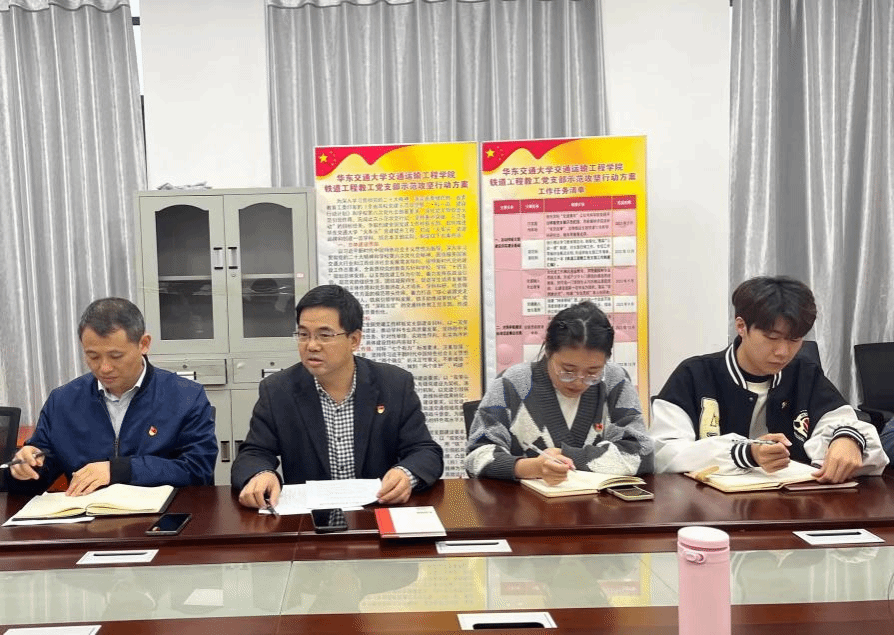 会上,铁道工程教工党支部书记王威、高铁研究公司党支部书记张志坚、铁道工程詹天佑员工党支部组织委员李芷仪依次做工作经验分享。