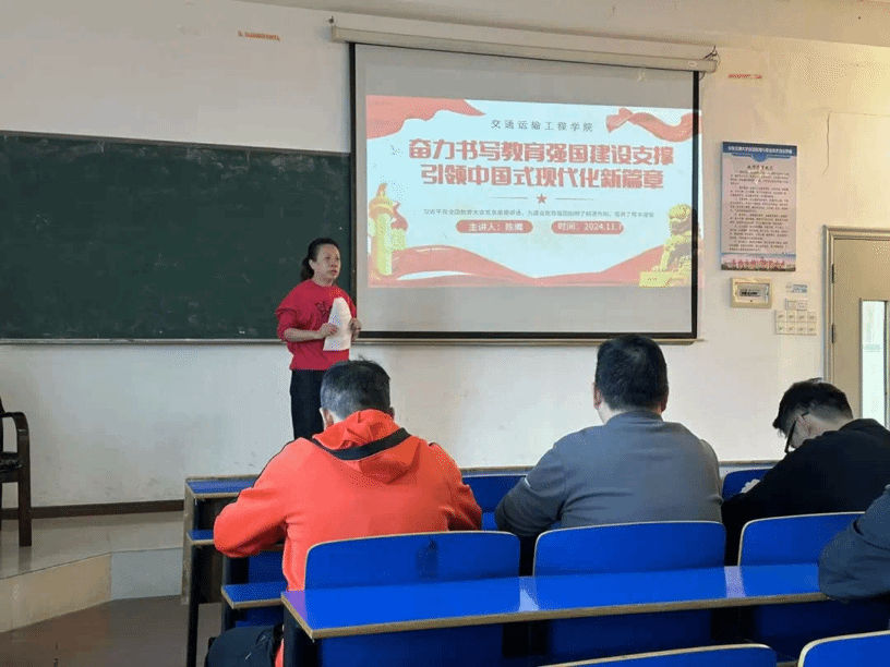 11月7日下午16:00,公司党委副书记陈鹰在教38栋312教室为铁道工程、交通工程和测绘工程专业全体党员上了一堂生动而深刻的党课。本次党课围绕习近平总书记在全国教育大会上的重要讲话,深入解读了新时代教育强国建设的重要意义和战略定位。