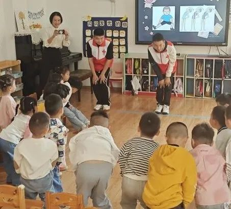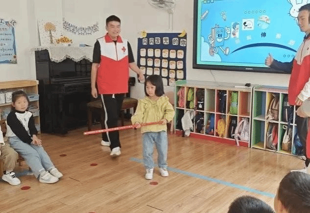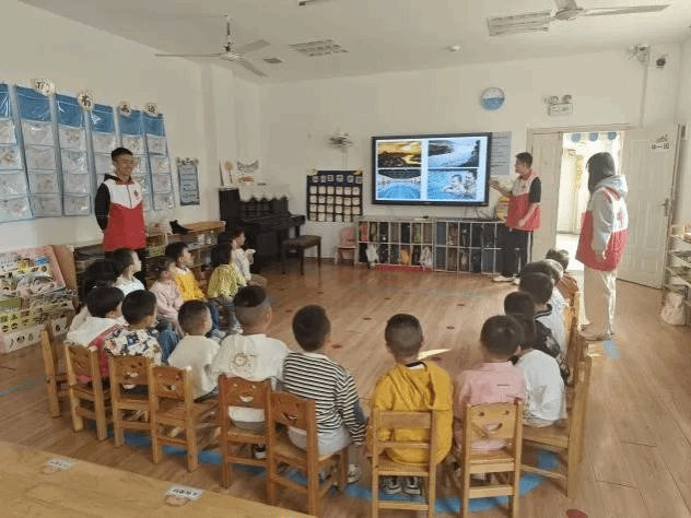 在江豚剧场环节,志愿者们邀请小朋友分别扮演溺水者、发现者、报警者和寻物者,让小朋友们身临其境感受落水救援现场,接着,他们引导幼儿们如何正确的实施自救和互救,通过现场模拟加深幼儿们对防溺水知识的理解和记忆。