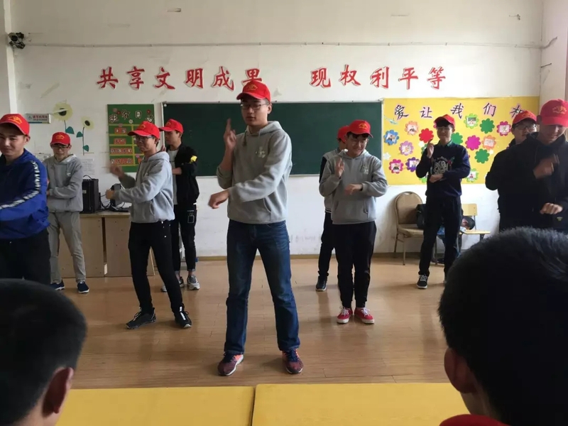 志愿者们到达安养院后,便满怀热情的走到他们身边,并将带来的水果和糖分给安养院的残障人士们,陪他们聊天,教他们折纸,帮助他们打扫卫生。正值阳光明媚,志愿者们还搀扶他们来到教学楼外晒太阳,随后搬来小凳子并和他们围坐在一起欣赏其他志愿者们带来的才艺表演,舞蹈《宠爱》《社会摇》,歌曲《没有什么不同》《栀子花开》和《倔强》,一段又一段的歌舞表演让每个人的脸上都挂上了笑容。雷锋精神在庭院内散播着,无私的气氛笼罩在安养院各个角落,散发清香。