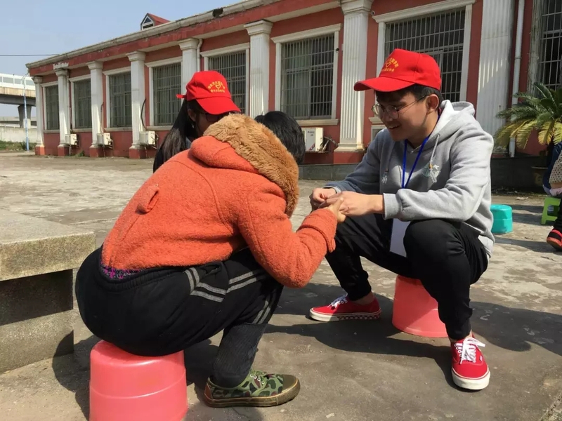 活动过程中,一名志愿者帮助一位精神存在一定问题的老人系鞋带,老人用难懂的方言一次又一次强调这种绑法是错误的,我们的志愿者不但没有不耐烦,反而一直聆听老人的“指导”,并按照她的方式帮她系好鞋带。,志愿者们的到来,使他们收获的不仅仅是一份快乐,更是一份尊重与感动。活动的最后,志愿者们仔细打扫了整个安养院,并进行了合影留念。