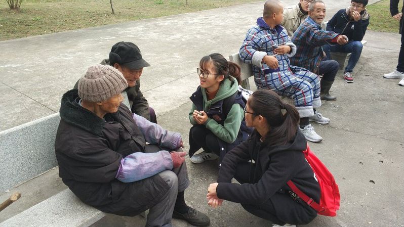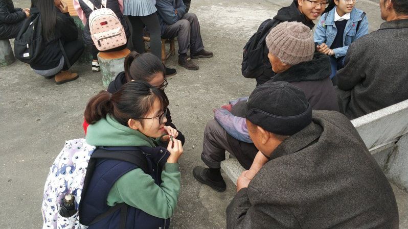 志愿者到达时,老人们正在院子里晒太阳,志愿者的到来使本来冷清的院子变得热闹起来,老人的脸上露出了喜悦的笑容。虽然双方语言不通,但在本地员工翻译下,老人与同学们的聊天仿佛毫无隔阂,宛如祖孙一般的融洽。