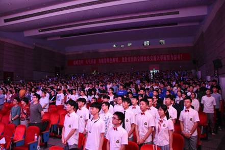 “我和我的祖国,一刻也不能分割,无论我走到哪里,都流出一首赞歌……”。晚会上,红旗舞动,青春飞扬;台上老师们倾情献唱,台下千余师生激昂相和,共同唱响《我和我的祖国》,为祖国七十华诞献礼!为天佑学子壮行!