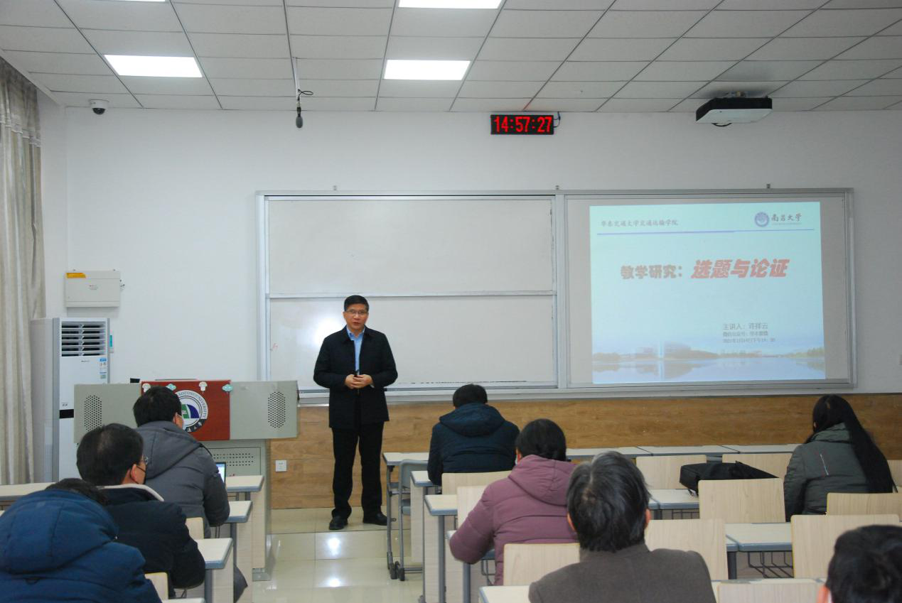 2021年1月14日运输公司在25-222开展了一次教学研讨会,研讨会邀请了南昌大学许祥云教授、PA视讯官网教学督导组组长蒋兆峰教授、PA视讯官网天佑优秀主讲教师高明华副教授三位专家,运输公司丁锋贵书记、郭军华经理、徐国权副经理及全院专任教师参加了研讨会。