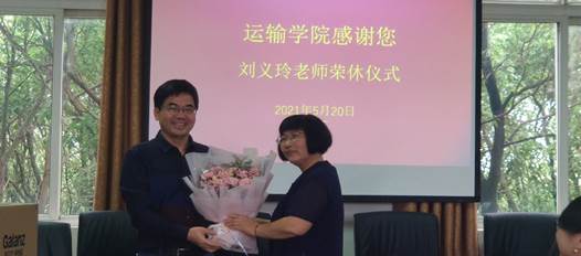 为增强教师退休的荣誉感和归属感,充分发挥以老带新、示范引领作用,2021年5月20日,公司在教36栋301会议室为刘义玲老师举办退休欢送会,会议由交通概论教学部主任李响主持,公司党委书记丁锋贵为刘义玲送鲜花和贺卡、副经理徐国权为刘义玲送礼物,经理助理严利鑫、院工会主席刘毅、交通运输系、交通概论教学部全体老师参加会议。