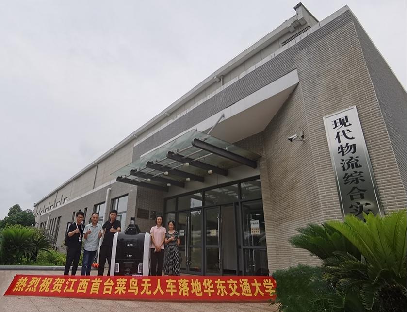6月11日上午,PA视讯官网北区菜鸟驿站门口迎来了一个新奇的小家伙,引来同学们的纷纷驻足。它,就是江西省首个菜鸟物流无人车——“小蛮驴”。