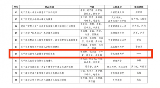 公司学子获评提案《关于加强农村留守儿童教育管理》(指导老师:叶强、胡晓明)