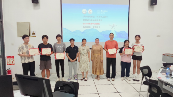 图为北京达北时代技术经理罗正海(左四)、测绘工程系程海琴(左五)、测绘工程系张晓鸣(左六)与优秀学员合影。