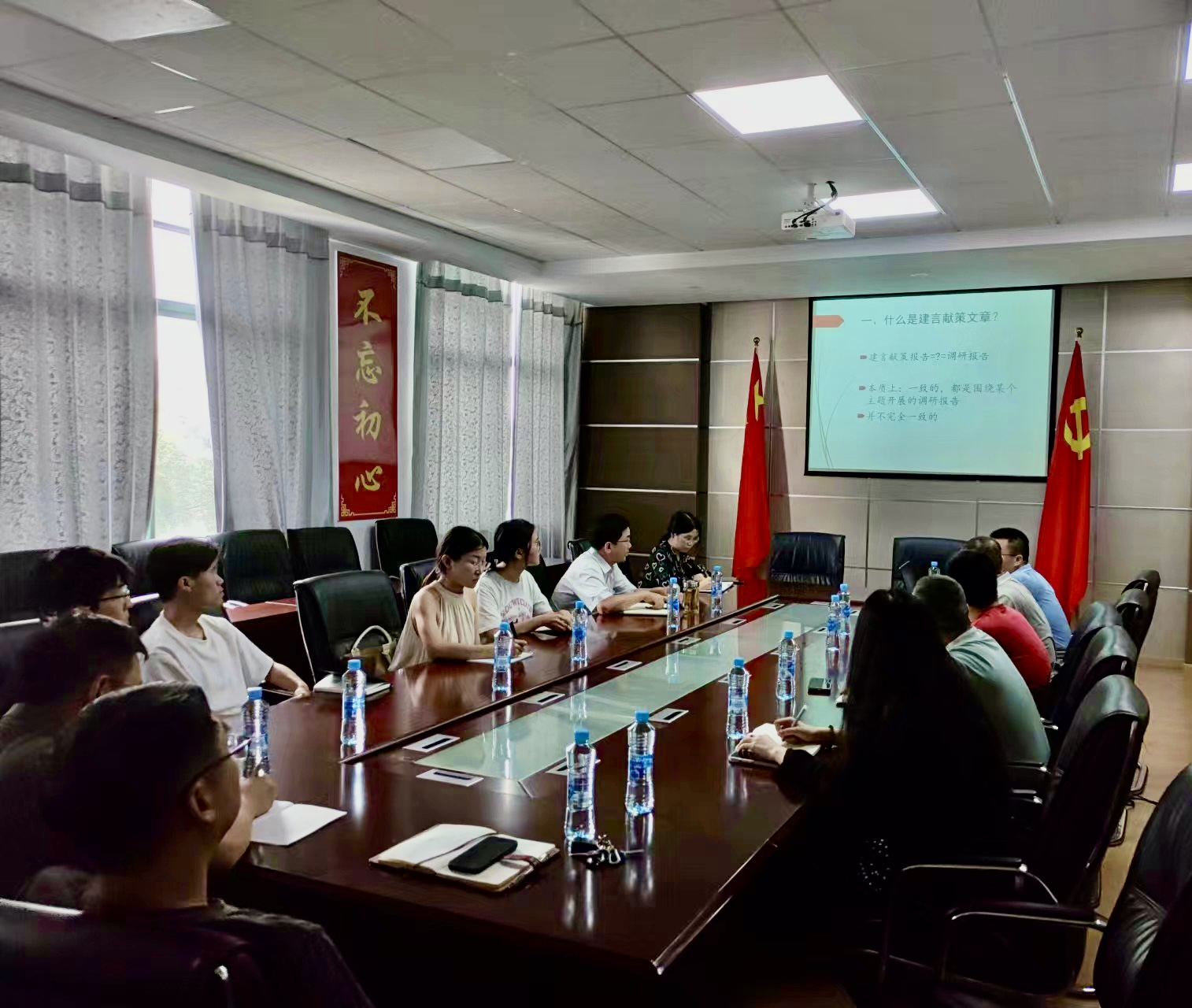 主题教育调研会上,部分教师对如何撰写建言献策感到束手无策,为了帮助他们提升撰写建言献策的能力,8月18日下午,江西省社会科学界联合会助理研究员、江西省社会科学界联合会《内部论坛》《智库成果专报》编辑曹高明受邀为公司师生作“浅谈建言献策选题及撰写规范”的主题报告。本次报告会采用线上线下相结合的形式,由PA视讯副经理张志坚主持,公司党委书记丁锋贵及公司部分师生参加。