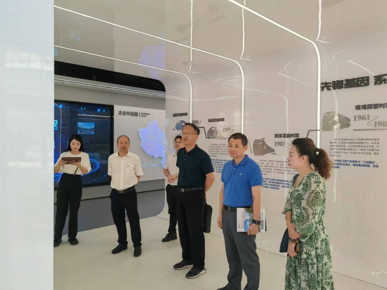 会前何明全(员工)书记带领公司领导参观中铁武汉电气化局集团有限公司“电气先锋”展厅和中铁电气化(武汉)设计研究院有限公司荣誉室(李顺成劳模创新工作室)。