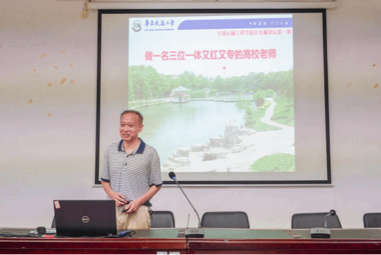 铁道工程教工党支部郑明新教授以《做一名三位一体又红又专的高校老师》为题做了“红尖椒讲坛”第一期报告。在报告中他指出“红尖椒”的实质是聚焦立德树人,当好人才培养的“引路人”,始终把培养“又红又专”“善交善通”的交通人作为使命担当。他希望大家充分认识到人才培养、科研工作、服务社会三者之间相互依赖、相互促进的关系。最后,他结合自己的工作经历,从积极学习并不断扩宽知识面和社会实践、积极参加学术活动、培养创新思维、培养良好的时间管理和自律能力、保持好良好的心理素质和敬畏之心等五个方面谈了如何做好科研工作。并鼓励大家将教学工作与科研工作相结合,做一名三位一体又红又专忠诚于党的教育事业的人民教师。