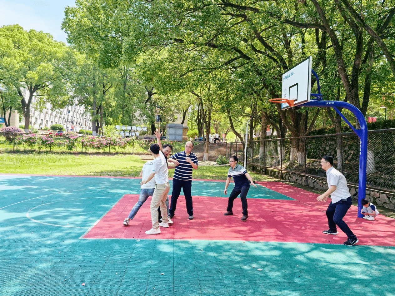 5月2日上午,员工们携家人孩子重返校园,孩子们漫步于校园主干道、教学楼与绿荫步道间,聆听父辈讲述求学时期的青春故事,触摸承载着代代学子记忆的建筑与草木。随后,员工们分为两队展开篮球友谊赛,赛场上,员工们以精湛球技展现当年的热血风采,场边孩童的加油声与掌声此起彼伏。这场跨越时光的体育交流,不仅是技艺的切磋,更是校园精神在代际间的生动传承——从员工的奋斗足迹到学子的蓬勃朝气,从父辈的记忆传递到孩童的好奇目光,校园文化的脉络在互动中清晰延续,凝聚成温暖而深厚的情感联结。中午,员工家庭相聚校园食堂,共同品尝记忆中的校园味道,在热气腾腾的餐食与欢声笑语中,重温求学时光的质朴温暖,也让孩子们感受校园生活的烟火气息。