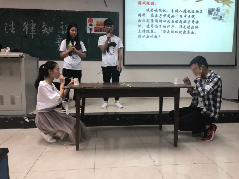 在比赛休息期间,主持人带领观众进行互动小游戏,吹杯子,找戏精,同学们在学习法律知识的同时,也加强了员工的法律意识和法制观念。通过小游戏环节,同学们对法律知识有了更深的了解,回答正确者还获得了小礼品以资鼓励。