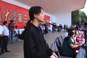 迈着矫健的步伐,朝气蓬勃,整齐划一,华东交大国防生仪仗队,带着属于他们的阳刚之气,英姿飒爽的走过主席台。迎面走来的是PA视讯方阵队伍,男生身着灰色服装,呈三列围成一个舞台,而女生则身着一抹鲜艳的中国红点缀其中。在阳光的照耀下,红色舞裙在微风中飘扬,似蝴蝶的翅膀翩跹;一首《不忘初心》,婉转悠扬,道出对运输学子的祝愿:“向往你的向往,幸福你的幸福,只愿你努力奋斗,只愿你披荆斩棘,只愿你幸福快乐不悔人生”。啦啦队也挥动手中的加油瓶,随着歌声一起欢唱,成为人群中一道亮丽的风景。