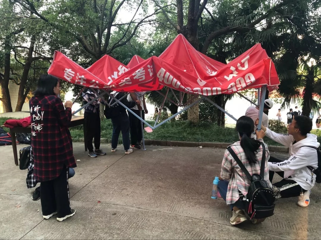 田径场上是他们扛着相机奔跑拍摄的身影,只为记录下运动员们的精彩瞬间;帐篷下是他们埋头写稿的专注,只为让更多人知道运动员的努力和胜利;宣传部的干事奔波在“一线”,通过写稿件微信推送及时对赛事进行宣传报道。办公室的干事们每天也会提前到达南区,进行搭帐篷,搬桌子搬音响等工作,同时为拉拉队员提供了矿泉水、药箱、“金嗓子”和“草珊瑚”含片;当比赛结束,所有人都离场后,他们要整理好场地才能离开。组织部则负责每天的啦啦队签到考勤,保证好赛场秩序,创建一个良好的赛场环境。