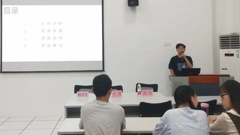 会议伊始,叶老师代表公司、学工办感谢全体工作人员的加入与付出。同时,他也对迎新工作人员提出几点希望,并对迎新工作做出几点要求。