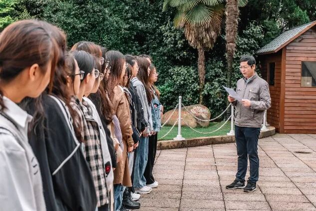 伴随着慷慨激昂的歌声,车子很快驶达了胡耀邦陵园,陵园道路两旁草木丛生,苍松翠柏交织向前。在行进过程中,讲解员就胡耀邦同志的相关事迹及陵园构造进行了讲解,“墓地海拔42.7米,坐西朝东。两条墓地均铺设有73级台阶,象征着胡耀邦73年人生的曲折道路… …”在讲解员声情并茂的讲解中,大家不知不觉前行到了胡耀邦同志的墓碑前。