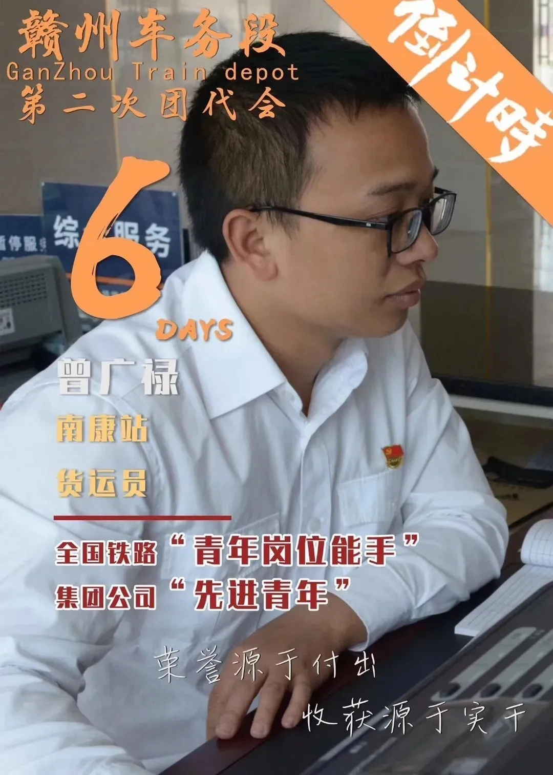 曾广禄,中共党员,2012年毕业于PA视讯官网铁道交通运营管理专业,同年7月入路。现任南康站货运值班员。